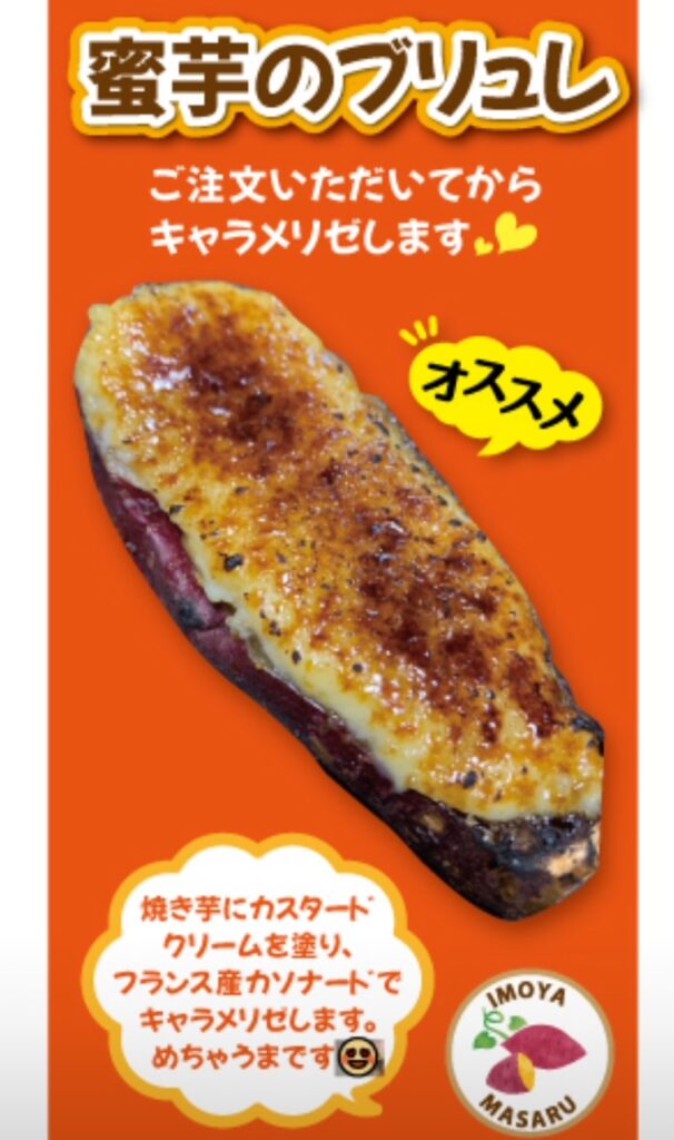 その他焼き芋にカスタードを塗ってキャラメリゼした蜜芋ブリュレや大学焼き芋,さつまいもスティックなど大好評で一押しメニューです❗️