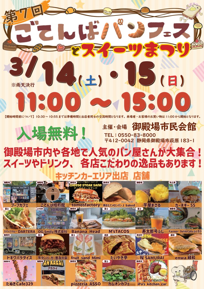 この度は「第7回ごてんばパンフェスとスイーツまつり」にご出店いただき、誠にありがとうございます。