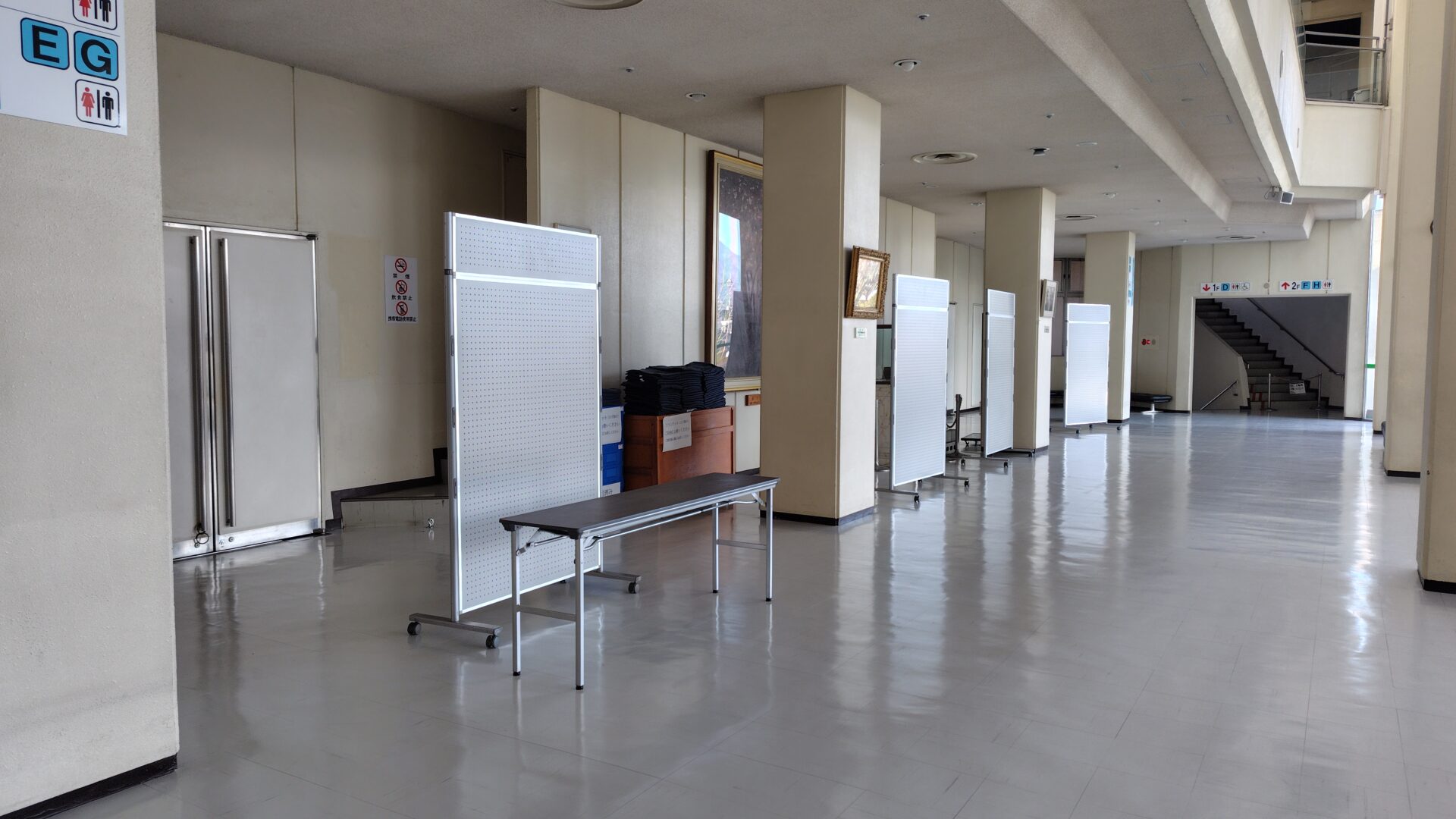 8:30に建物入口が開館しますので、開館後に小ホール内及びホール棟エントランスに商品や荷物の搬入及びオープン準備を開始できます。